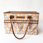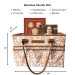 This caddy features 18 exterior pockets for easy access to small items like prayer cards, pens, or rosaries, and a spacious open interior to hold larger items like Bibles, journals, and books. It’s easy to carry with durable double handles and is finished with a stitched faux leather patch that reads "Come Holy Spirit"—a gentle and beautiful reminder of who leads our hearts and homes. The soft floral pattern adds a touch of charm, making it a lovely addition to any sacred space. Perfect for moms, catechists, or anyone wanting to keep their prayer life a little more organized and a lot more lovely.