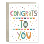 Greeting card with envelope. Front: Congrats to youInside: So happy for you! (Psalm 100:1 NIV)Folded size: 4.25" x 5.5" (A2) Printed on FSC Certified paper in the USA.Made in the United States.