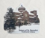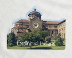 Photo of the monastery on a custom die cut vinyl sticker with a glossy protective finish. Printed with eco-solvent inks for better durability, no odor, and fewer volatile organic compounds to reduce the impact on the environment. All materials are made in the USA. Sticker size: 3"